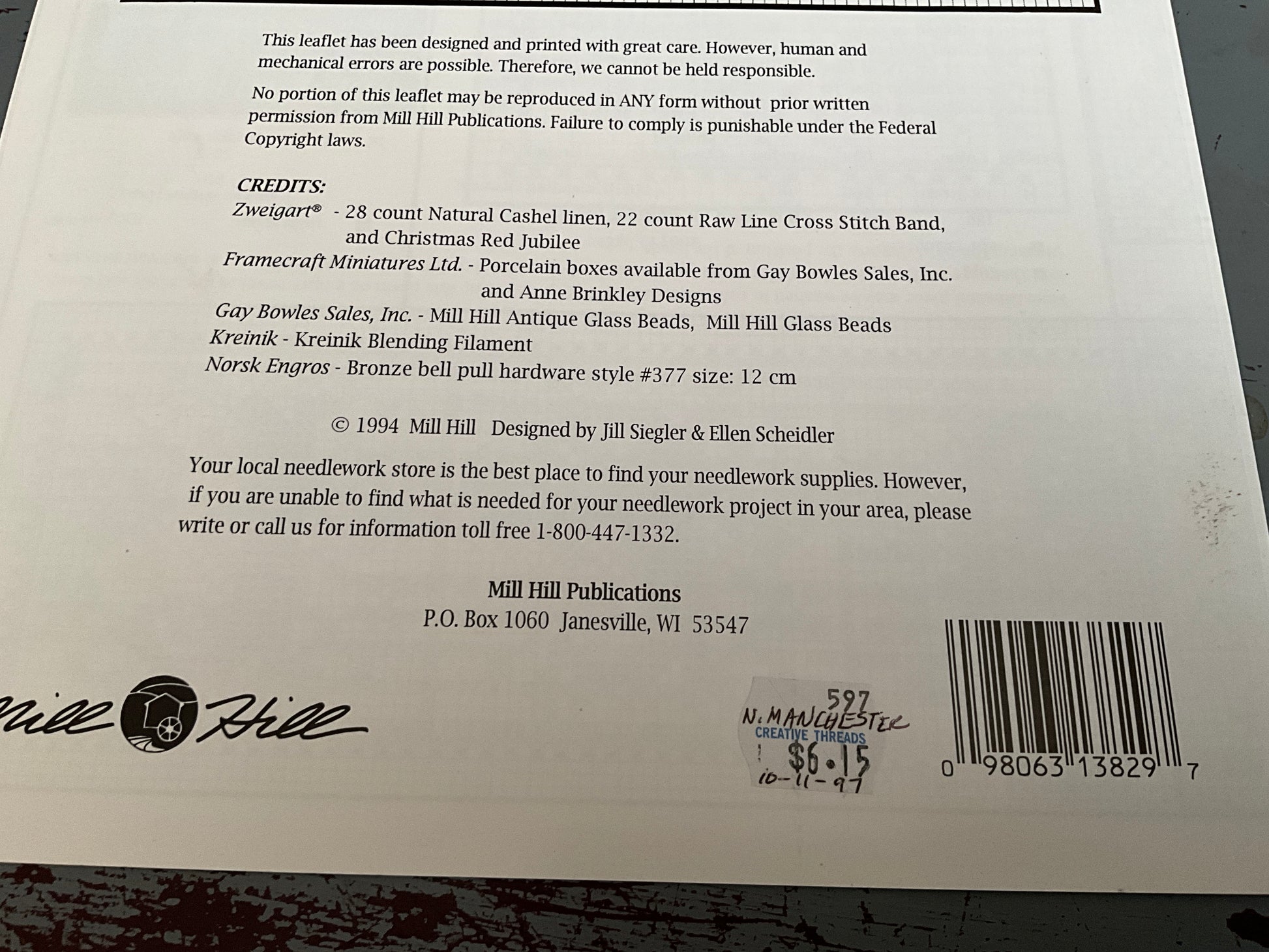Mill Hill Choice Holiday Season Vintage 1990s Counted Cross Stitch Charts See Variations*