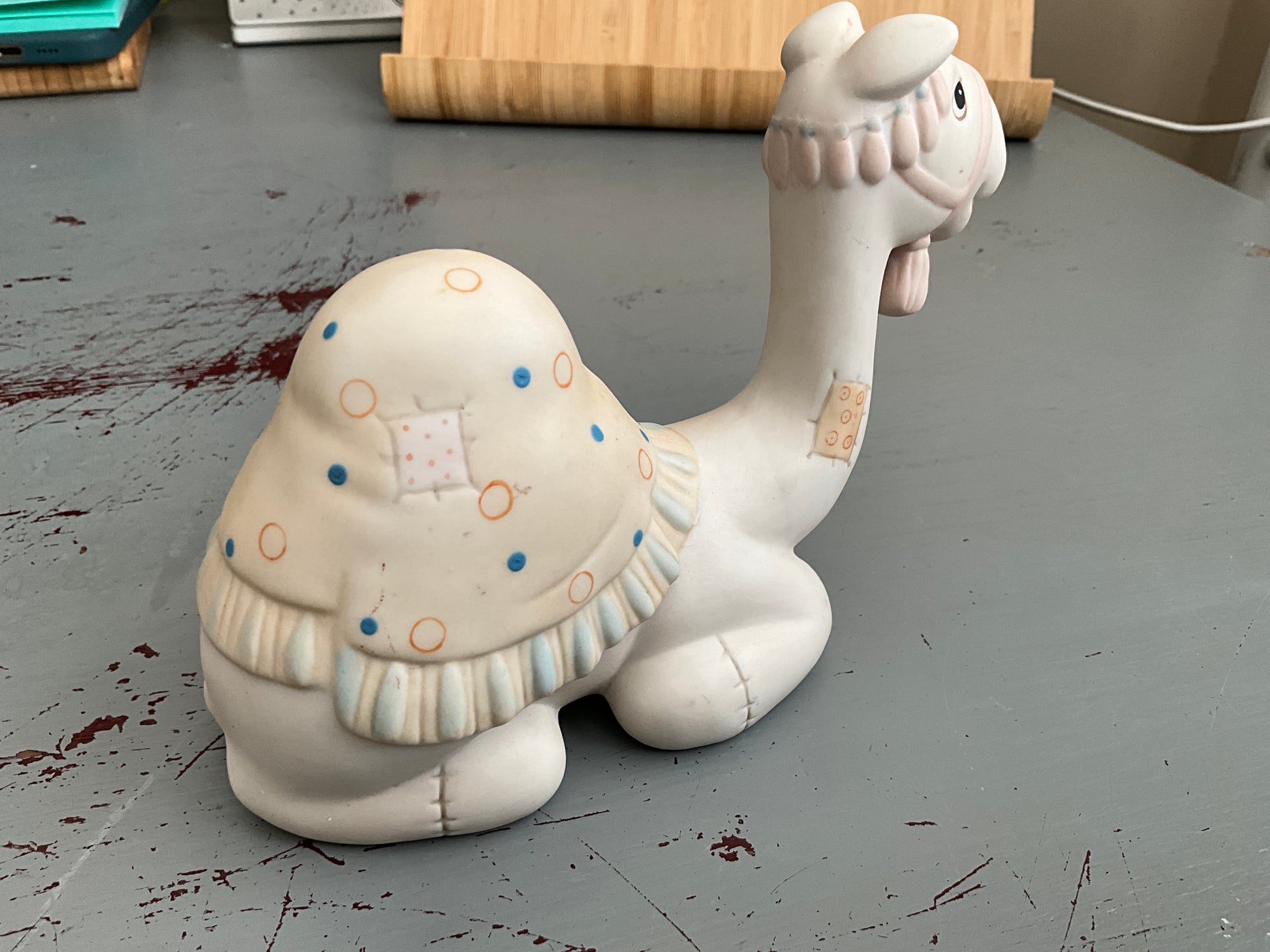 Genuine Jonathan & David camel with decorated hump blanket, bridal, & head cover figurine