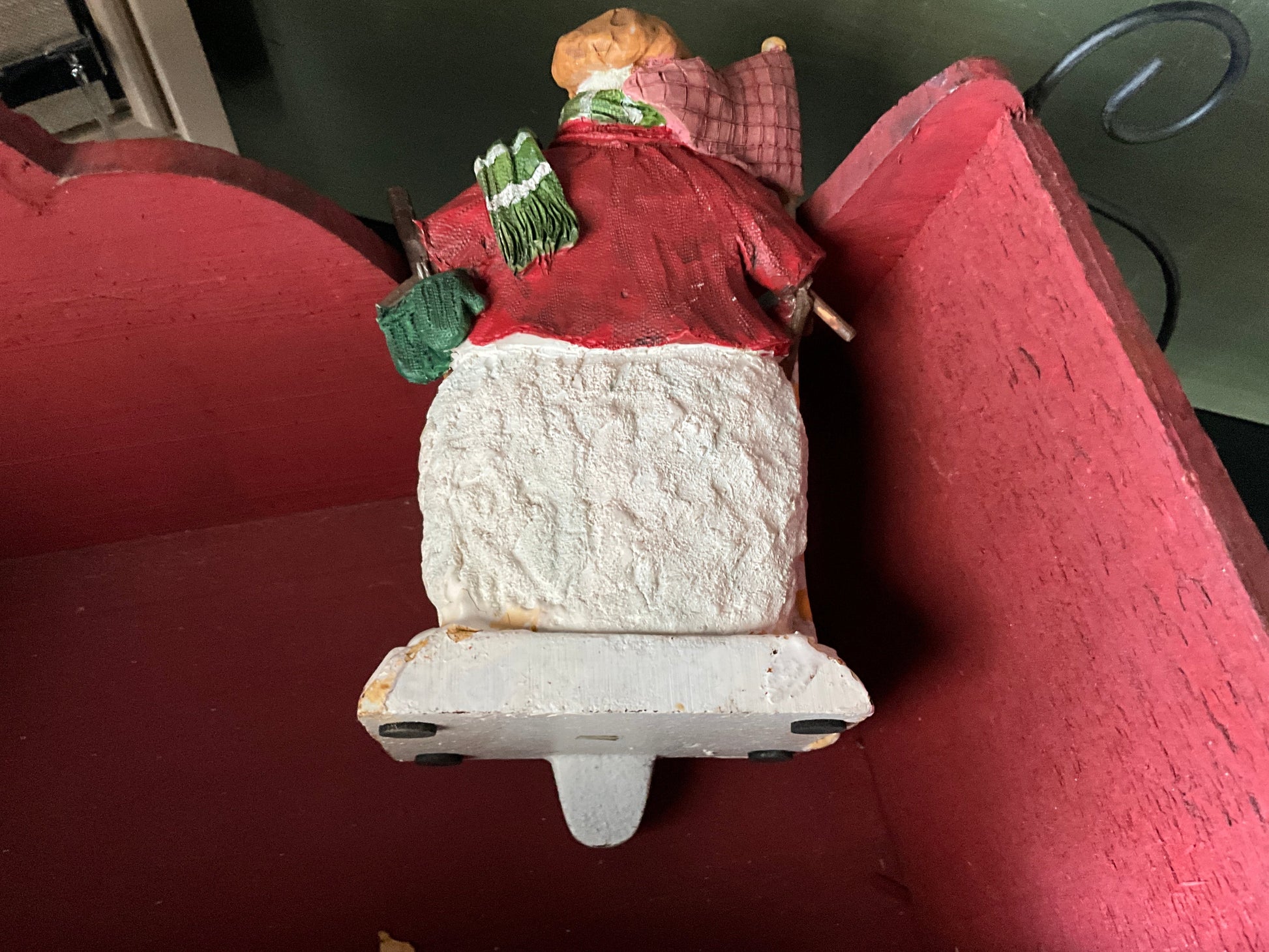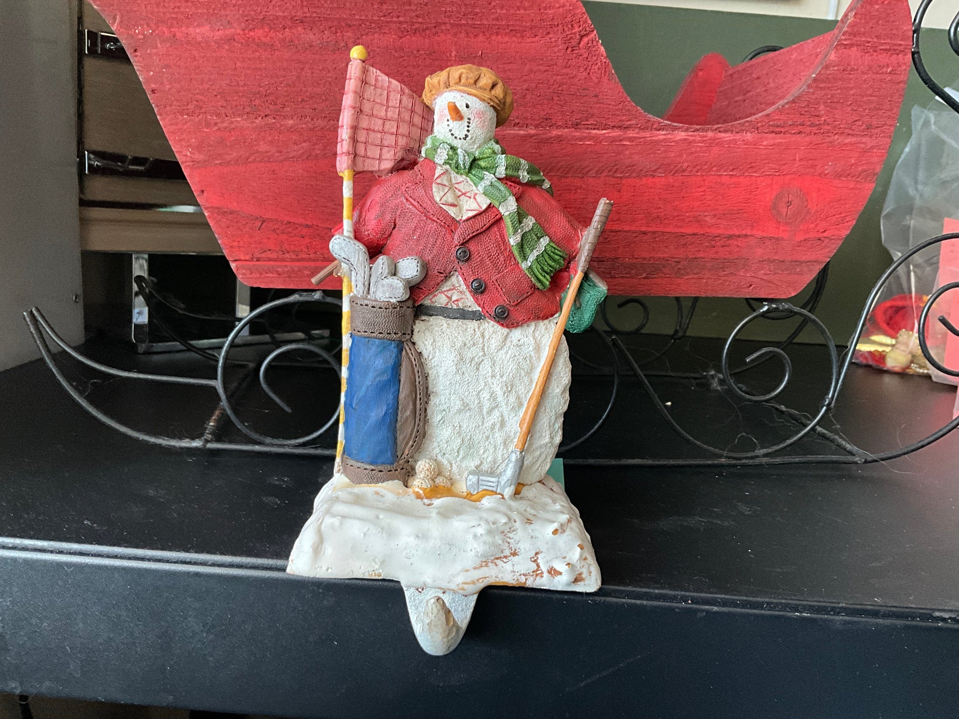 Golf player snowman cast iron manual stocking hanger